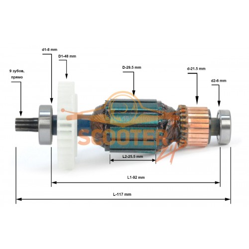 Ротор (Якорь) ИНТЕРСКОЛ 29,6х25 мм для дрели-шуруповерта ДШ-10/260Э (с 01.01.2015) (L-117 мм, D-29.5 мм, 9 зубов, прямо)