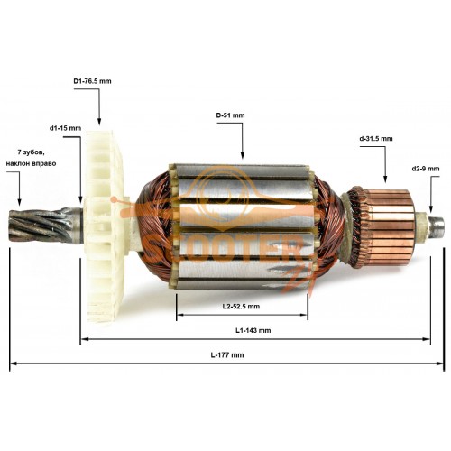 Ротор (Якорь) ИНТЕРСКОЛ ДП-160 (22.04.02.01.00) (L-177 мм, D-51 мм, 7 зубов, наклон вправо)