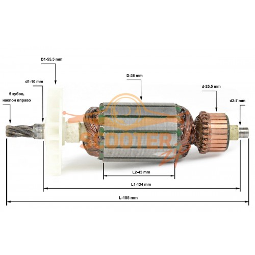 Ротор (Якорь) ИНТЕРСКОЛ ДП-800 (L-155 мм, D-38 мм, 5 зубов, наклон вправо)