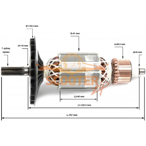 Ротор (Якорь) ИНТЕРСКОЛ ДУ-16/1050 ЭР (L-157 мм, D-41 мм, 7 зубов, прямо)