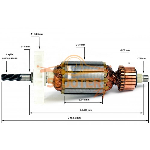 Ротор (Якорь) ИНТЕРСКОЛ ДУ-650 (L-154.5 мм, D-35 мм, 4 зуба, наклон влево)